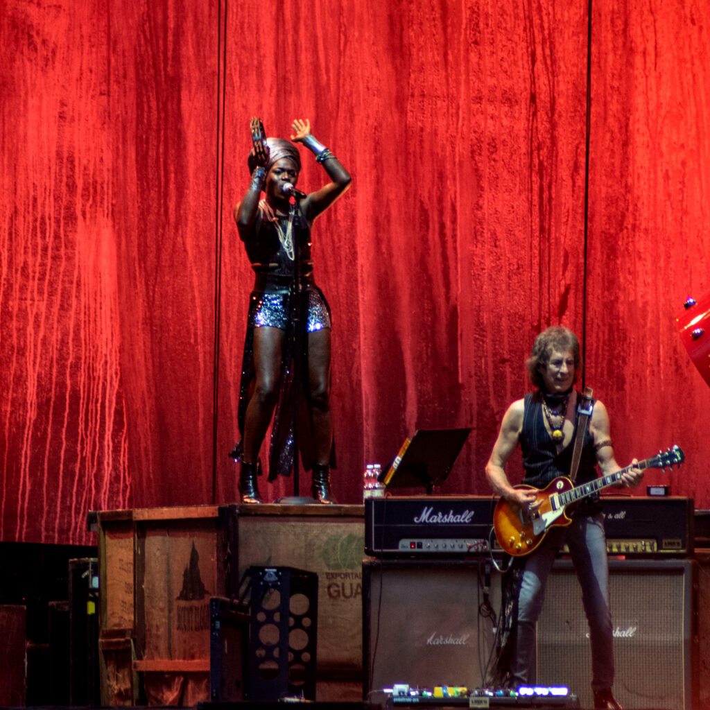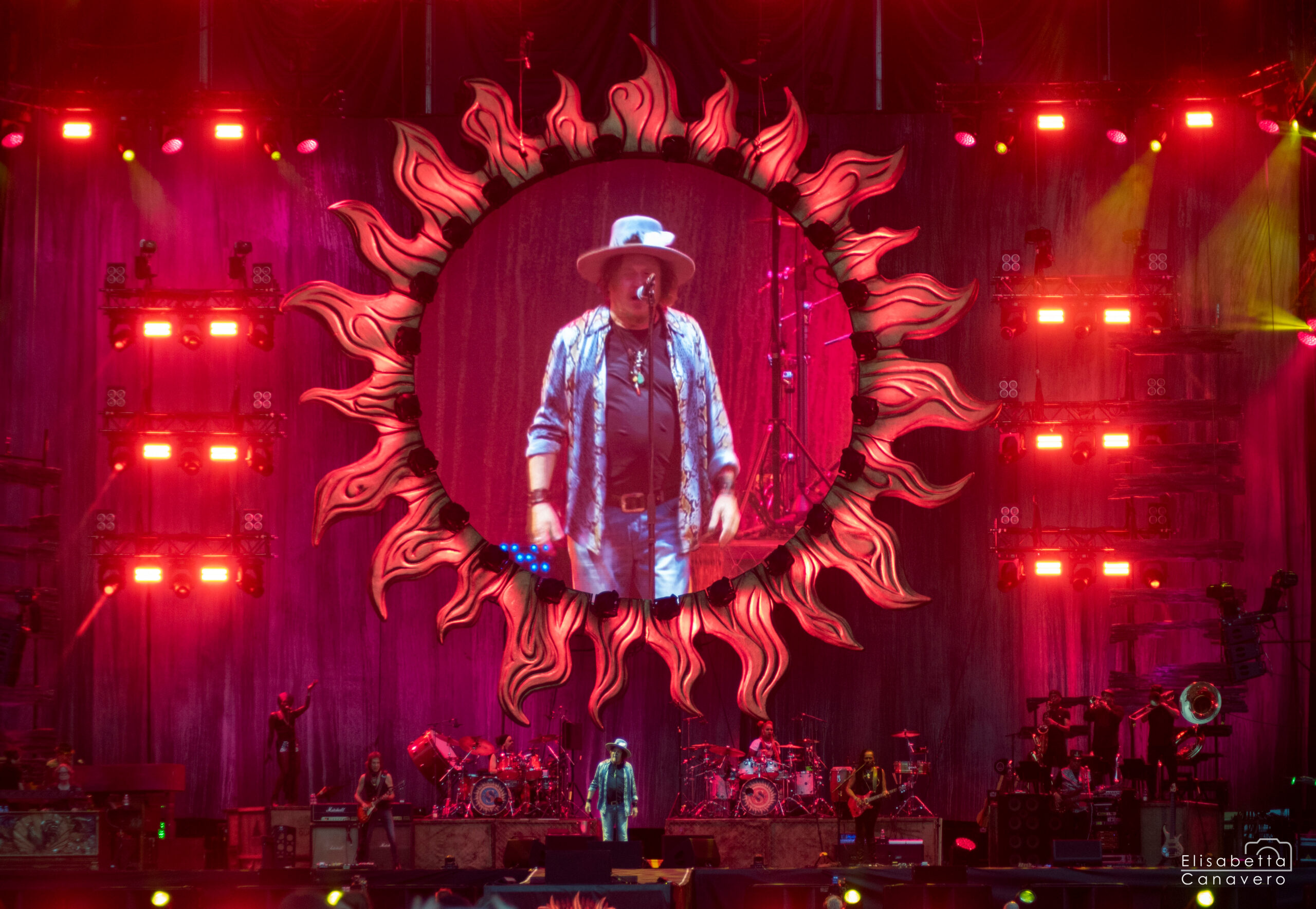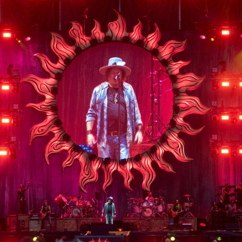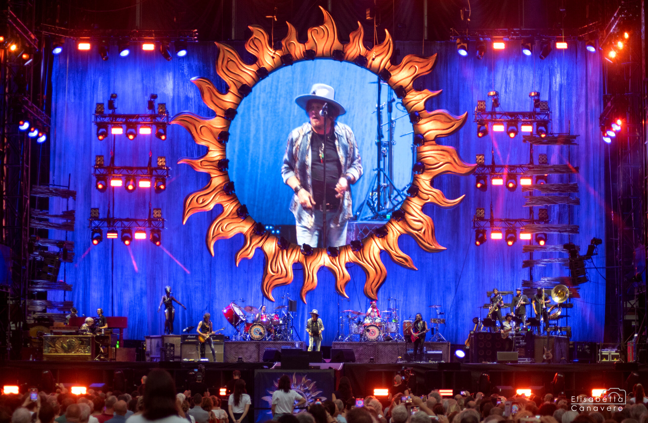 Ma la magia non si ferma alla voce: la scenografia sapientemente studiata – ledwall imponenti, giochi di luce e atmosfera coinvolgente – trasforma lo stadio in un cinema dal vivo. La sua band, rodata e potente, con ritmi solidi, chitarre incisive, synth e percussioni energetiche, regala un ascolto tra musica e festa.